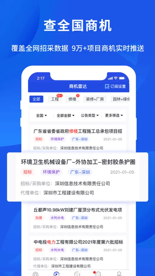 【全国项目商机】覆盖全行业招采数据,9万+项目秒级更新,个性订阅实时推送;