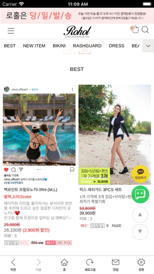 비키니,모노키니,래쉬가드,비치웨어 등 다양한 상품의 여성의류 쇼핑