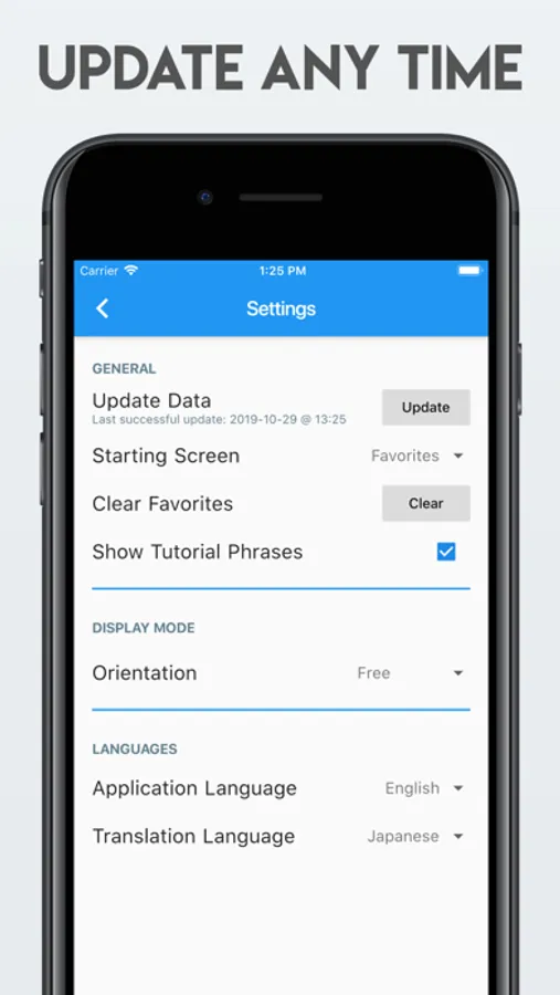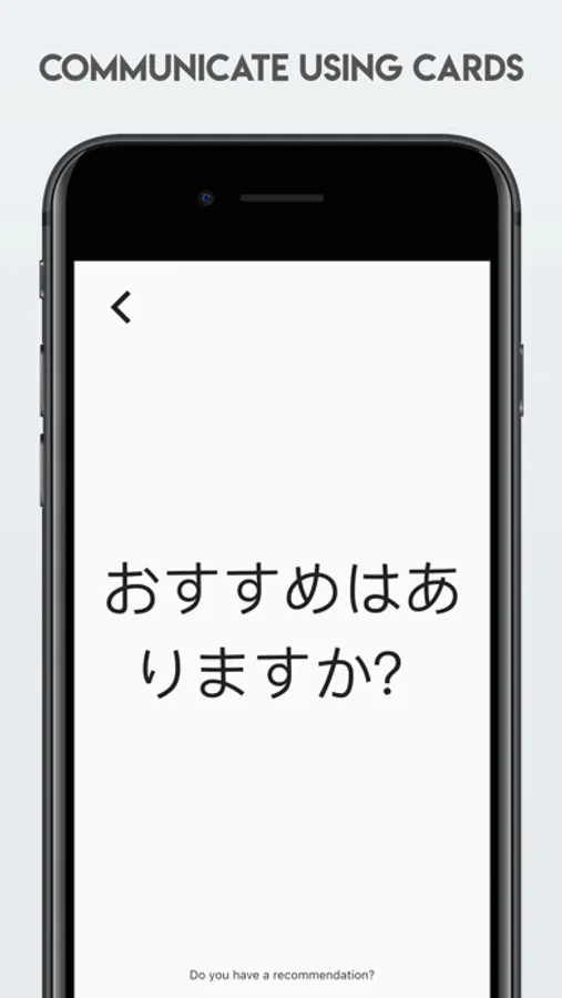 Traveling Japan and need to ask some questions? This app helps you do that. Find phrases you plan to use, then display them in an easy-to-read card whenever you need it.