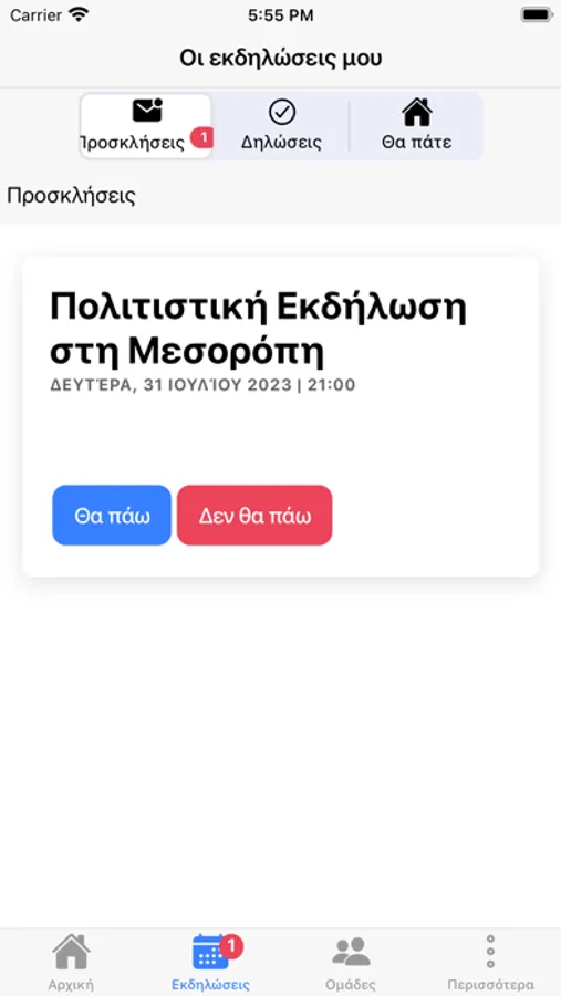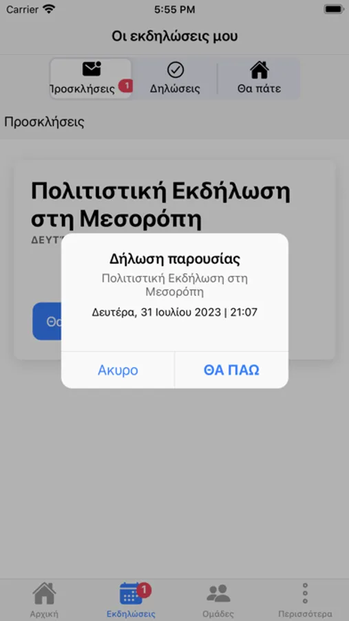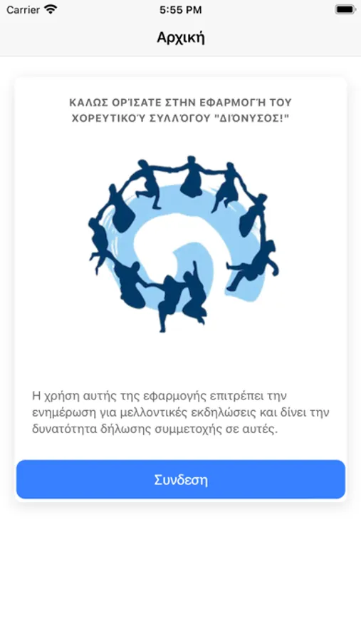Η χρήση αυτής της εφαρμογής επιτρέπει την ενημέρωση για μελλοντικές εκδηλώσεις του συλλόγου "Διόνυσος" καθώς δίνει την δυνατότητα δήλωσης συμμετοχής σε αυτές από τα μέλη του συλλόγου.