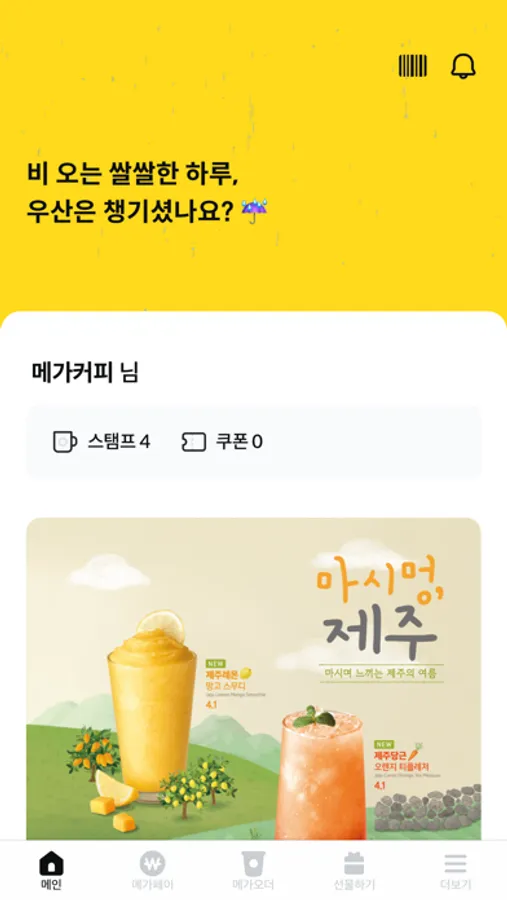 - MY 쿠폰 : 스탬프 쿠폰이 저장되어 있는 쿠폰함 입니다.