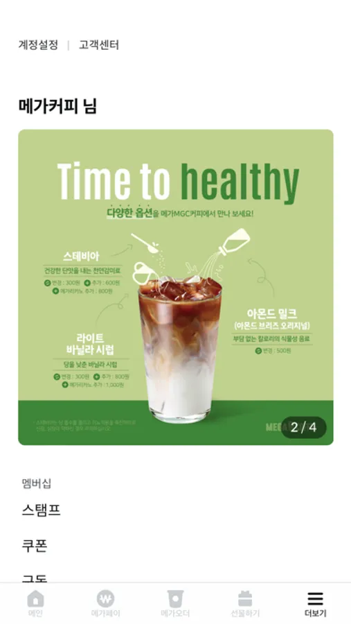 - MEGA MGC COFFEE 멤버십 APP은 멤버십 APP서비스를 도입한 매장에서만 사용하실 수 있습니다.