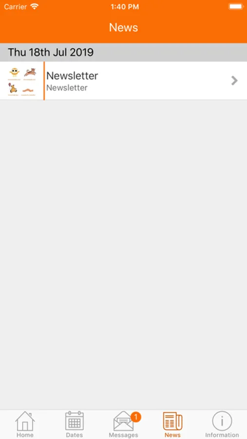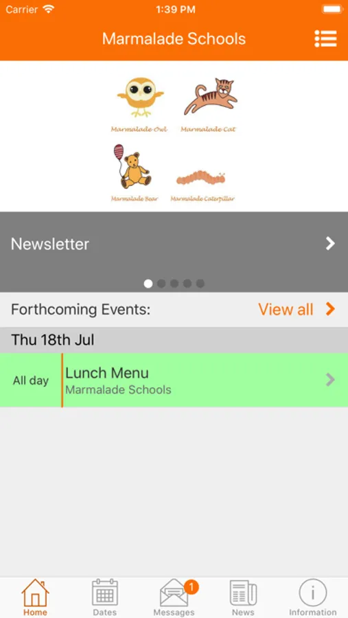 Shows all the latest stories from your school or organisation. If you tap on any news item you will be able to see more detail.