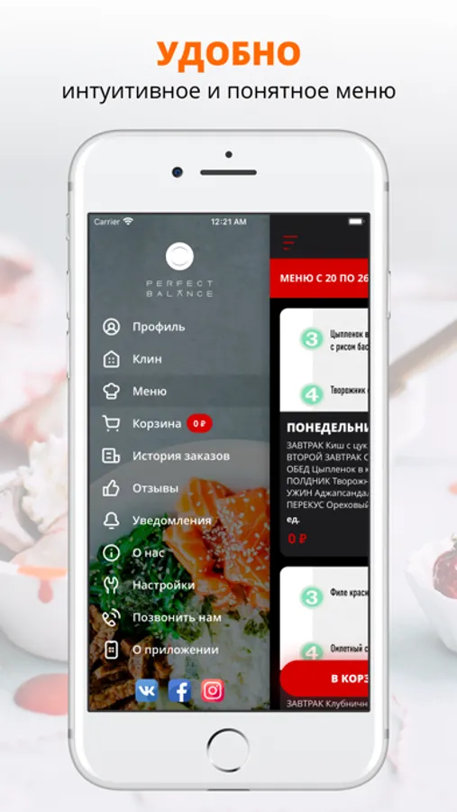 Воспользуйтесь удобным приложением для заказа еды «Perfect Balance».