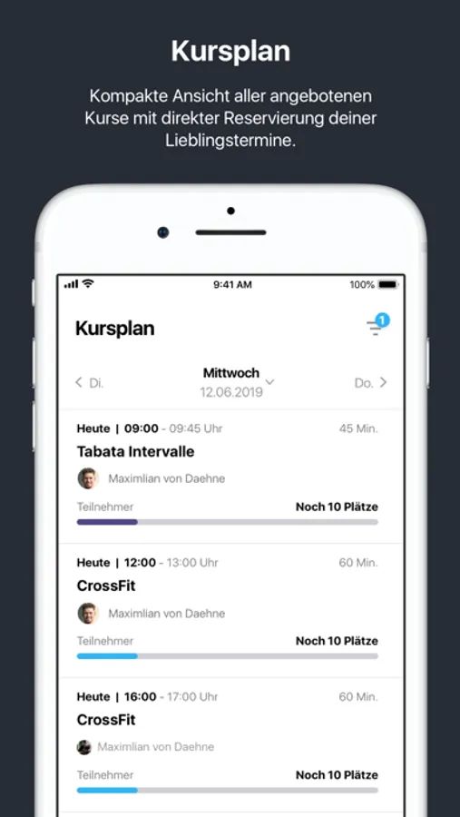 Kein Anrufen, kein persönliches Vorbeikommen – wer heute im Fitnessstudio einen Termin für einen Kurs mit begrenzter Teilnehmerzahl, ein EMS- oder Personal Training buchen möchte, macht das ganz bequem per App. Einfach eine Leistung auswählen, einen Termin festlegen und schon steht deinem Training nichts mehr im Wege. Sollte dir etwas dazwischenkommen, kannst du den Termin selbstverständlich auch wieder absagen – ein Knopfdruck genügt.