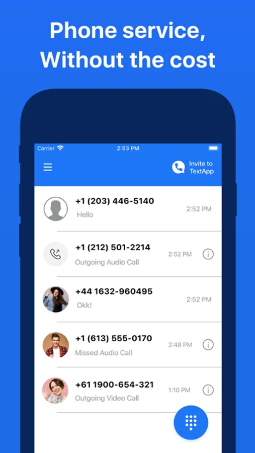 Audio and Video call & message your friends with your custom phone number - no phone service required! SMS text any number or call worldwide.
