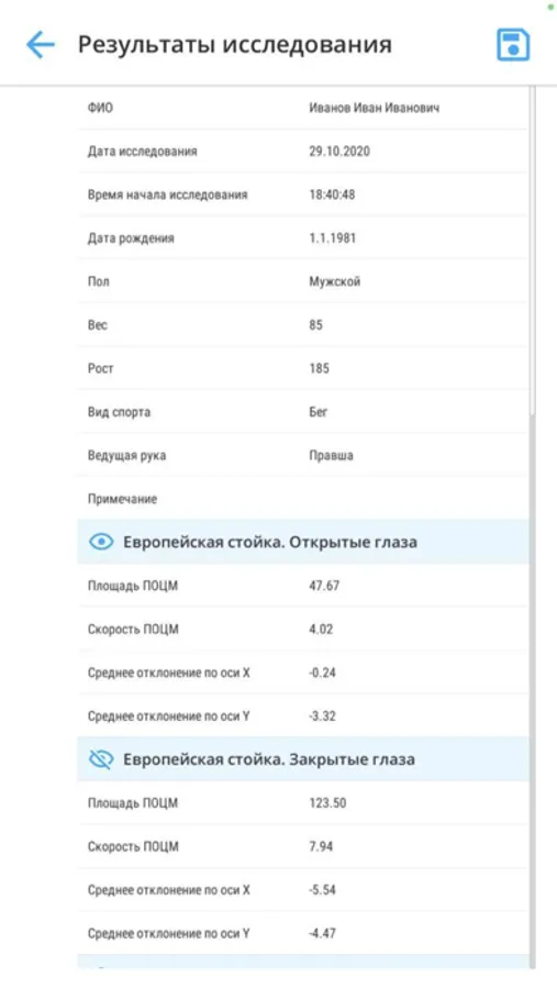 Приложение для быстрой оценки постурального баланса с помощью датчиков смартфона