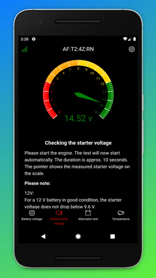 Batteriezustandsanzeige, Anzeige der Voltage, Lichtmaschinentest, Ladespannung, Warnung bei entleerter Batterie und Startspannungsprüfung.