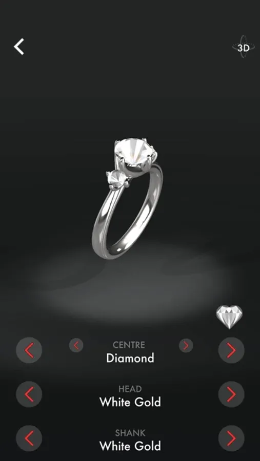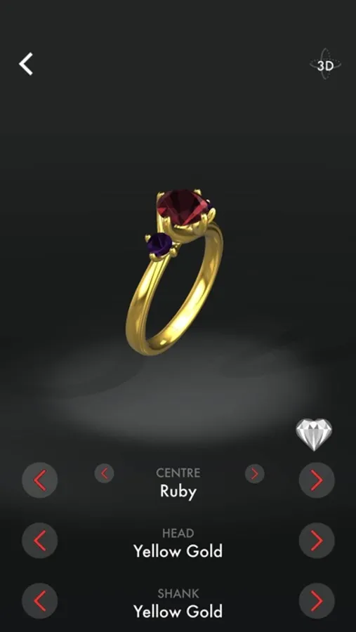 The application allows you to view and experiment with different precious metals and stone combinations, and view the designs you create in a beautiful 3D generated Model.