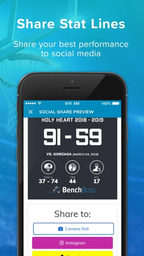 BenchBoss provides coaches with the ability to track live-game stats and effortlessly share the information with players immediately after a game, to their mobile phone.