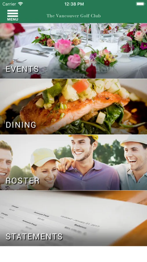 The Vancouver Golf Club app provides Members with the ability to view their Statements, make Dining Reservations and even book Tee Times. Use the Roster to connect with other Members and receive notifications on upcoming Club events, all by the way of your smart phone or tablet.