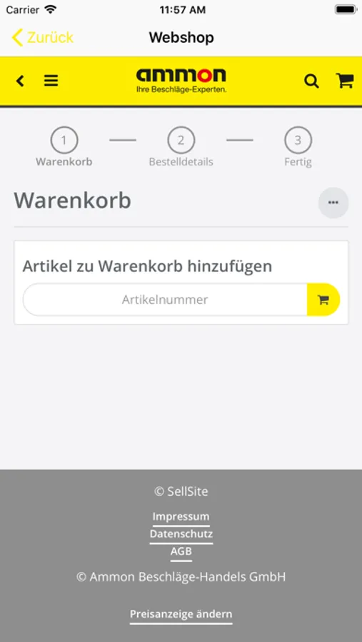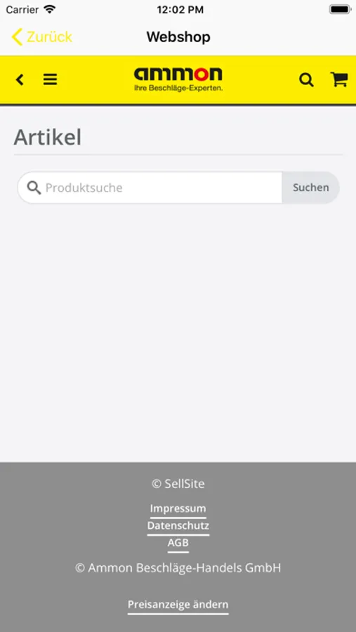 Ammon nonstop – Das Online-Angebot der Ammon Beschläge-Handles GmbH auf Basis des Shopsystems SellSite.