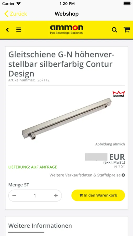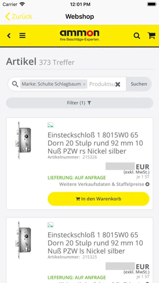 Ammon nonstop bietet Einblick in das gesamte Online-Sortiment der Ammon Beschläge-Handles GmbH und ermöglicht die einfache und schnelle Artikelsuche sowie eine komfortable Bestellabwicklung. Um die Artikelsuche so einfach wie möglich zu gestalten, verfügt Ammon nonstop außerdem über eine Scanner-Funktion. Hierbei kann einfach der Artikelbarcode gescannt und der Artikel über Ammon nonstop bestellt werden.