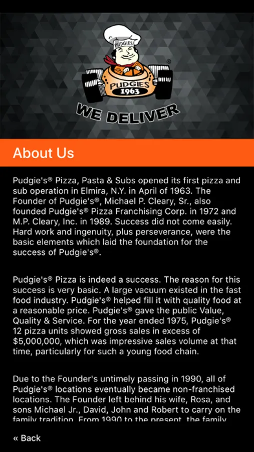 Get Pudgies Pizza's amazing food now on the go! Download the Pudgies Pizza mobile app and access our online ordering any time, anywhere. Order your favorite dishes for pickup. Also find us on your favorite social media site and connect with us for coupons and exclusive promotions.