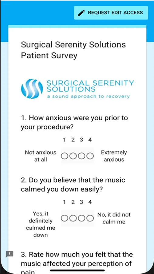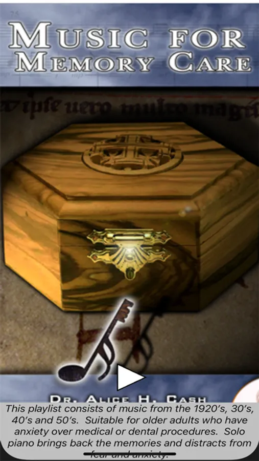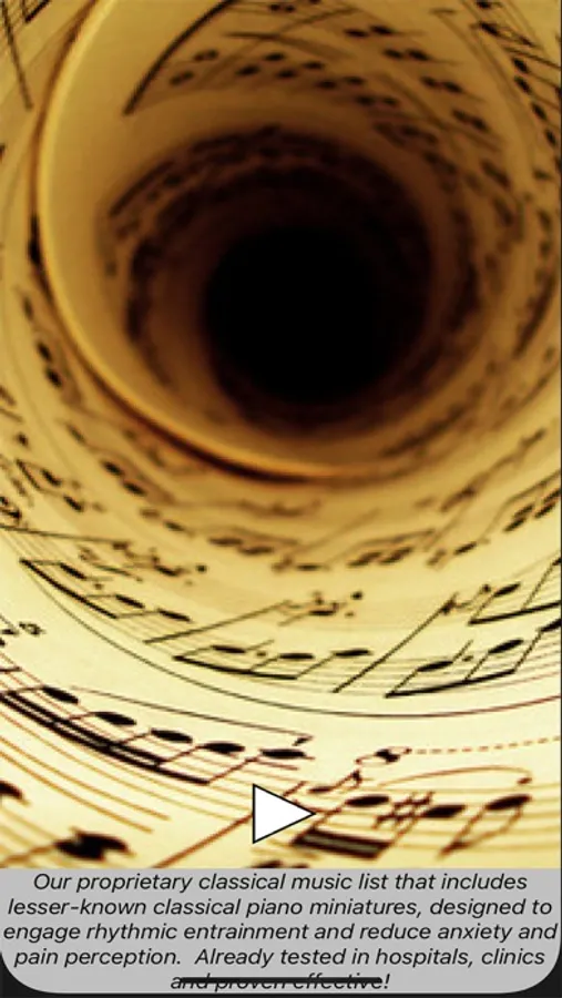This innovative app provides the surgical patient with one of five different playlists in different genres. Each playlist is approximately an hour long and repeats continuously until playlist is stopped.