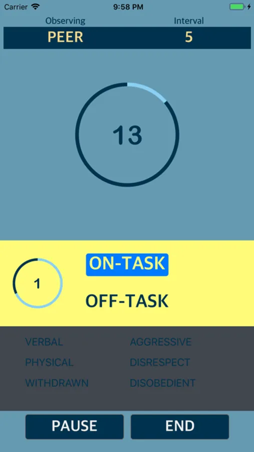 • Track and configure up to six (6) user-defined off-task behaviors to observe