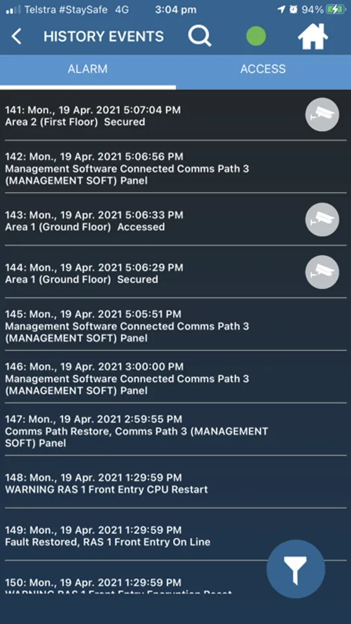 View panel history and outstanding alarms. The TecomPlus mobile app will directly display access and alarm events in the panel history buffer in a friendly, easy to read format. Notifications also allow users to quickly view any outstanding alarms or events, with a simple tap bringing you to right where you need to be to take action, all with the touch of a button.