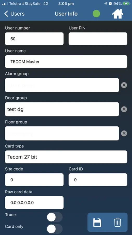 The TecomPlus mobile app allows you to control who can access the security system. You can program user PIN codes or access control cards, with added security of PIN authentication prior to viewing or modifying a panel. The TecomPlus mobile app also allows you to edit all user details, including access groups and expiry dates, as well as providing you with the ability to quickly and easily change your own PIN code without requiring full users access.
