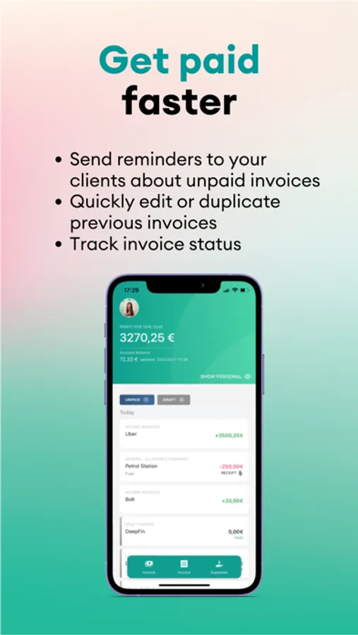 - Receive notifications and reminders for unpaid invoices, helping you stay on top of your invoicing.