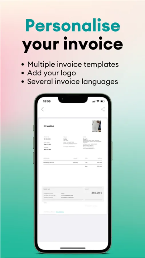 - Create and send invoices anytime and anywhere, right from your mobile phone.
