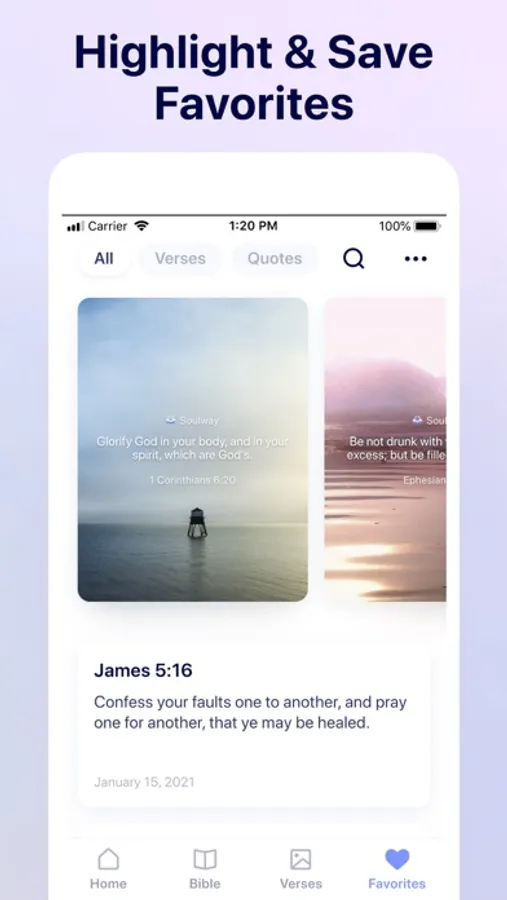* Get daily inspiration with a Bible verse paired with beautiful backgrounds. Save and share them with your loved ones.