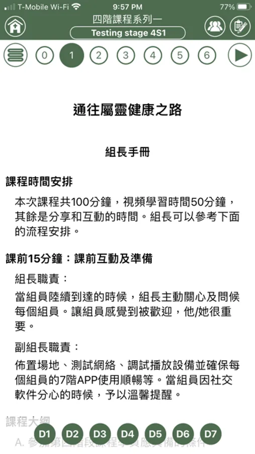 課程采用小組學習方式,7階提供針對小組長的資質培訓,參加並獲得小組長資格的會員,才可以申請開設小組課程,並獲得視頻播放權限。組員需要向小組長報名註冊課程,才可以參加小組學習。