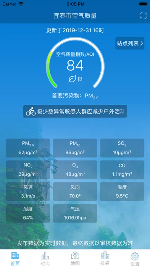 — 排名:可查看宜春市站点空气质量排名情况