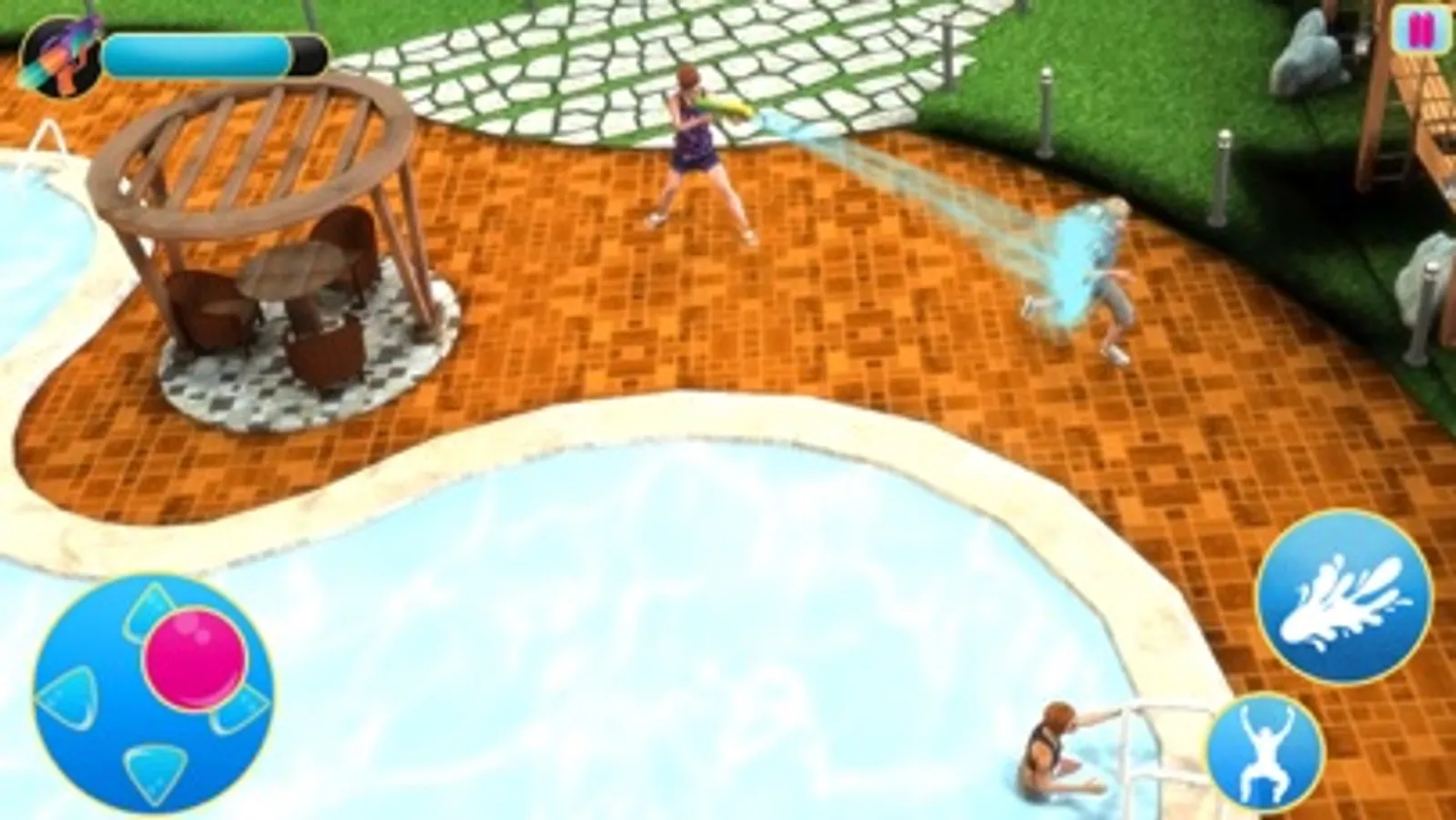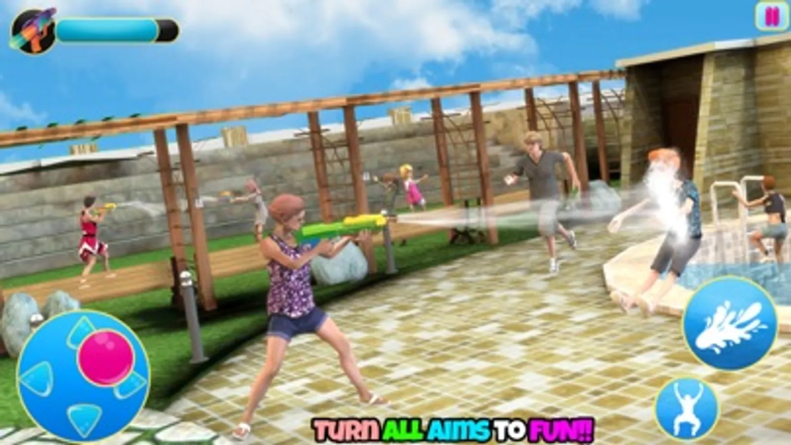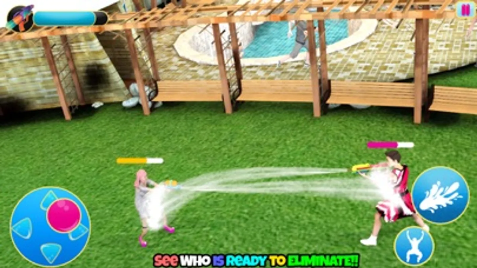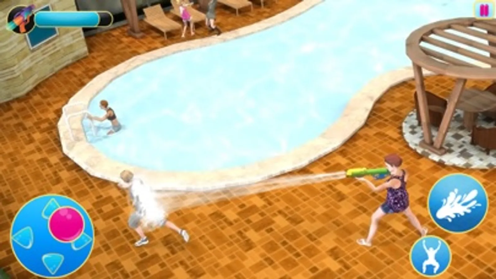 Show your ultimate water gun fight skills in this water gun war 3d shooting. Many challenges about first person shooting are waiting for you as you attack and shoot different people and party area. Play as combat shooter in noisy pool party in fpps games and open fire to smash different pool party areas like Bar-B-Q, swimming pools, lockers, car parks. Dance music added for pool party which is a refreshing change from the existing fps shooting games. Play tricks with water balloon! Fight!