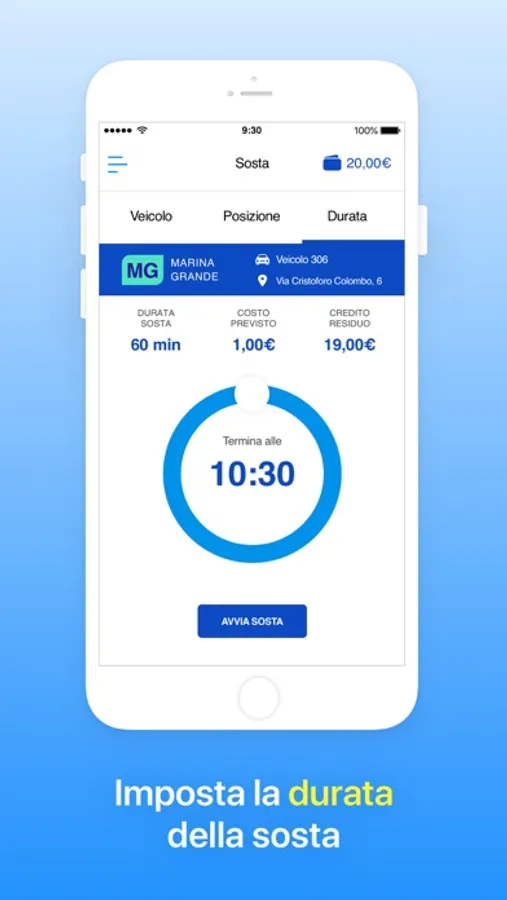 - Acquistare gli abbonamenti e attivare la sosta sulle strisce blu direttamente dall’App.