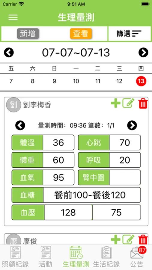 3. 生活紀錄:方便照護者與家屬即時溝通個案生活紀錄情形及互動