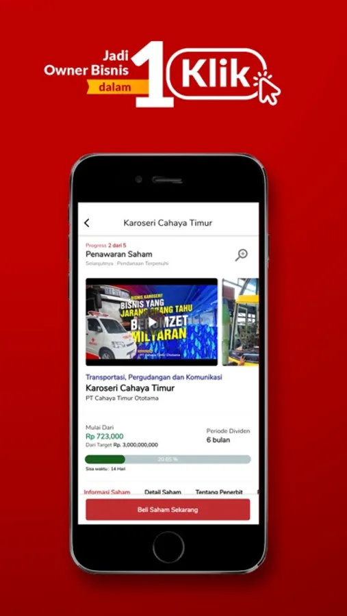Proses pendaftararan, memilih bisnis, beli saham, update perkembangan usaha hingga mencairkan dividen bisa dilakukan di satu platform saja.
