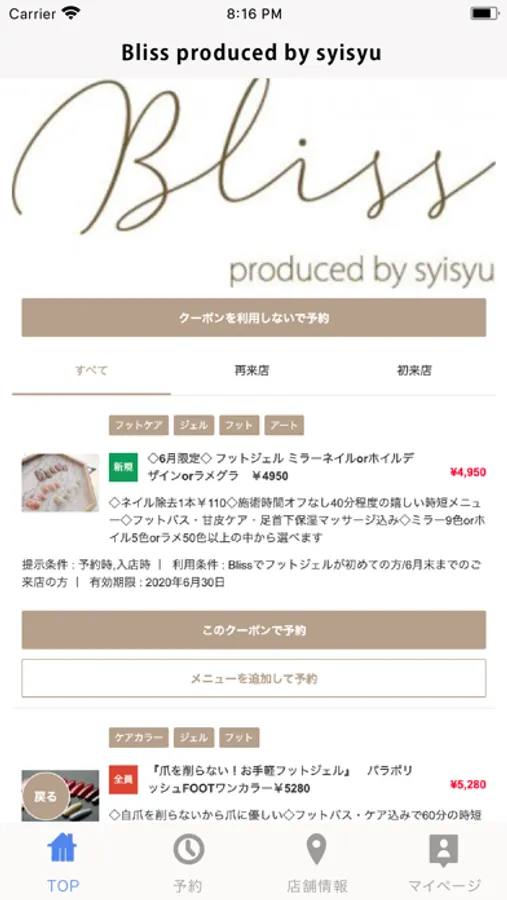 お得なクーポンが配信されます。ネット予約時にクーポン利用での予約も可能なので来店時もスムーズに施術頂けます。