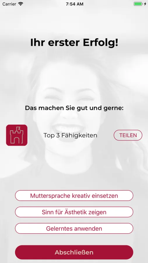 Sie beantworten in einem geschützten Rahmen Fragen zu Ihren Fähigkeiten und Interessen, setzen sich ehrlich mit Ihren Eigenschaften auseinander - völlig anonym und unverbindlich. Die Ergebnisse Ihrer Selbstreflexion erhalten Sie kompakt als PDF. Sie entscheiden, ob und mit wem Sie Ihre Ergebnisse teilen. Vielleicht mit dem Berater im persönlichen Austausch? Die Erfahrung zeigt: Auf der Grundlage Ihrer Selbstreflexion lässt sich hervorragend ein vertrauliches Orientierungsgespräch führen. Daraus können Sie eine gute Ausgangslage für zukünftige berufliche Entscheidungen aufbauen.