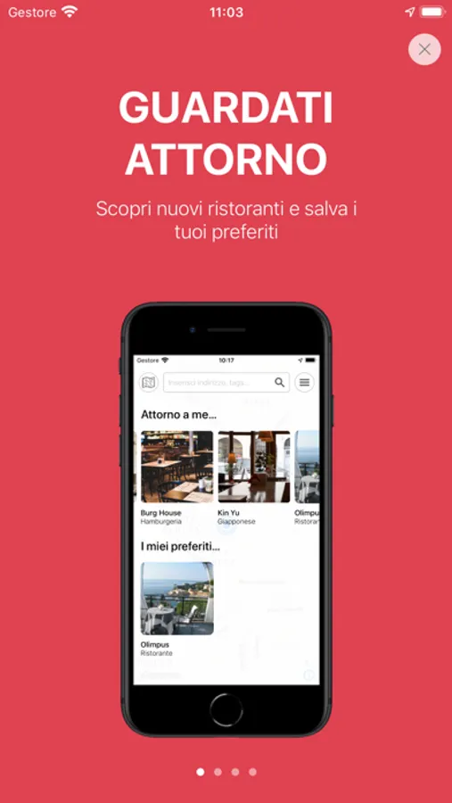- Geolocalizzarsi e trovare i ristoranti intorno a me
