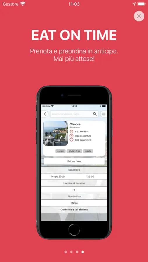 - Scegliere tra due diverse modalità di prenotazione Eat on