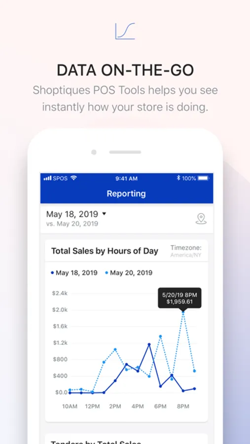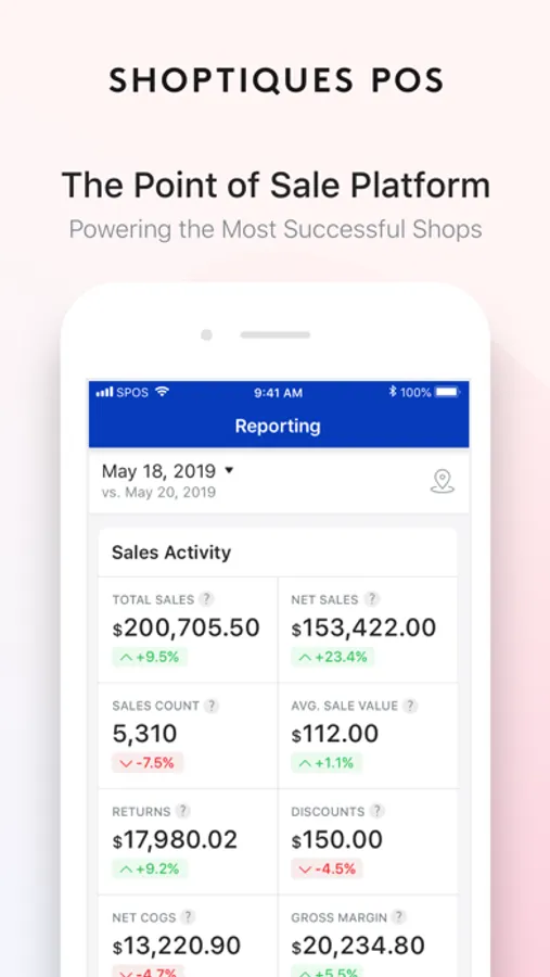 The Shoptiques POS Tools app is the perfect complement to your Shoptiques POS in-store technology and the Shoptiques.com marketplace. Quickly check your sales, compare your store’s performance to a previous period, view your top-selling products, and more, with just a tap.