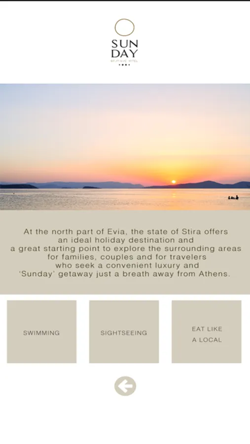 Situated in an elegantly restored, modernized and minimalistic property in Nea Stira, Southern Evia, Sunday Hotel is easily accessible from the center of Athens and Eleftherios Venizelos international airport via a short car and a 45-minute boat ride initiating visitors to the majestic waters of the Evian Sea.