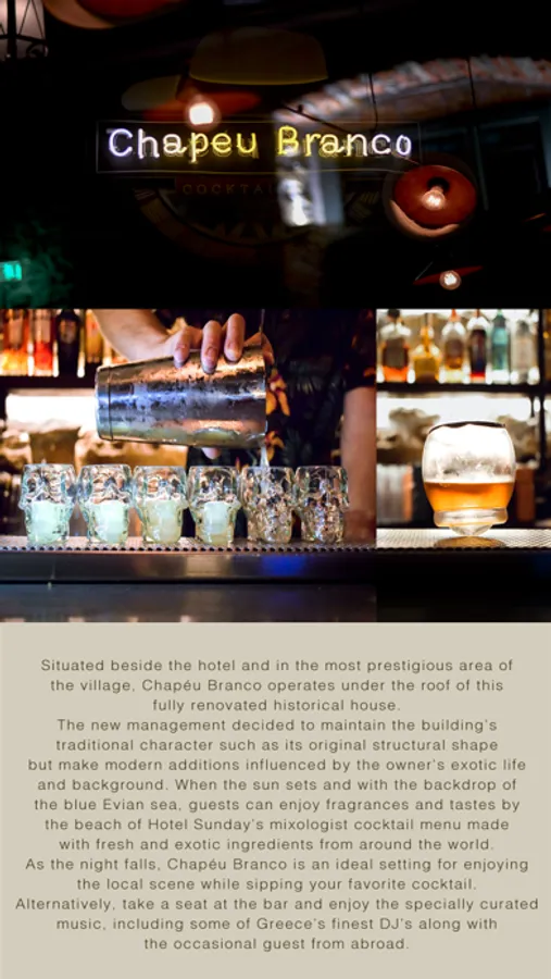 Situated beside the hotel, a dedicated cocktail bar Chapéu Branco operates under the roof of the historical, first ever built and fully renovated house of the area