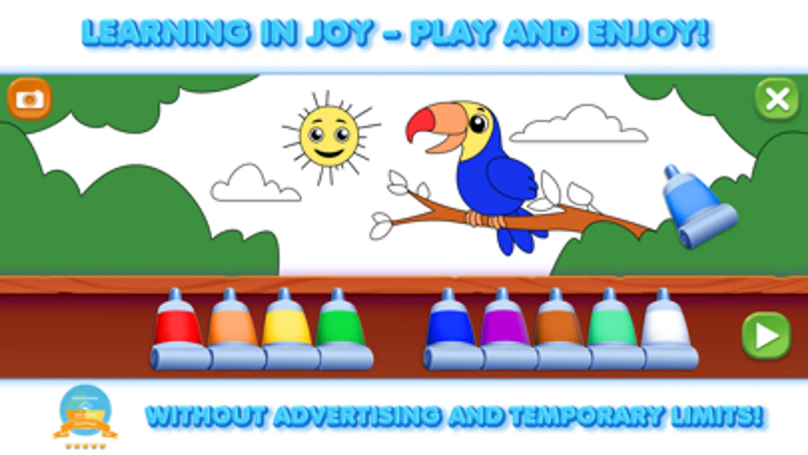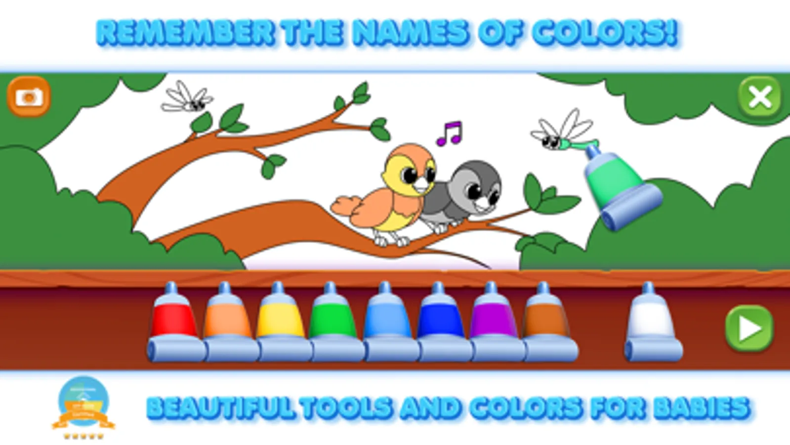 Simple and intuitive understandable tools for coloring will make the first acquaintance with different colors easy and fun, entertain your child with fascinating sounds of the environment, amazing sound effects and funny animation.