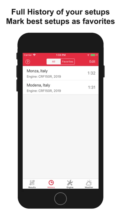 • History of all your jetting setups