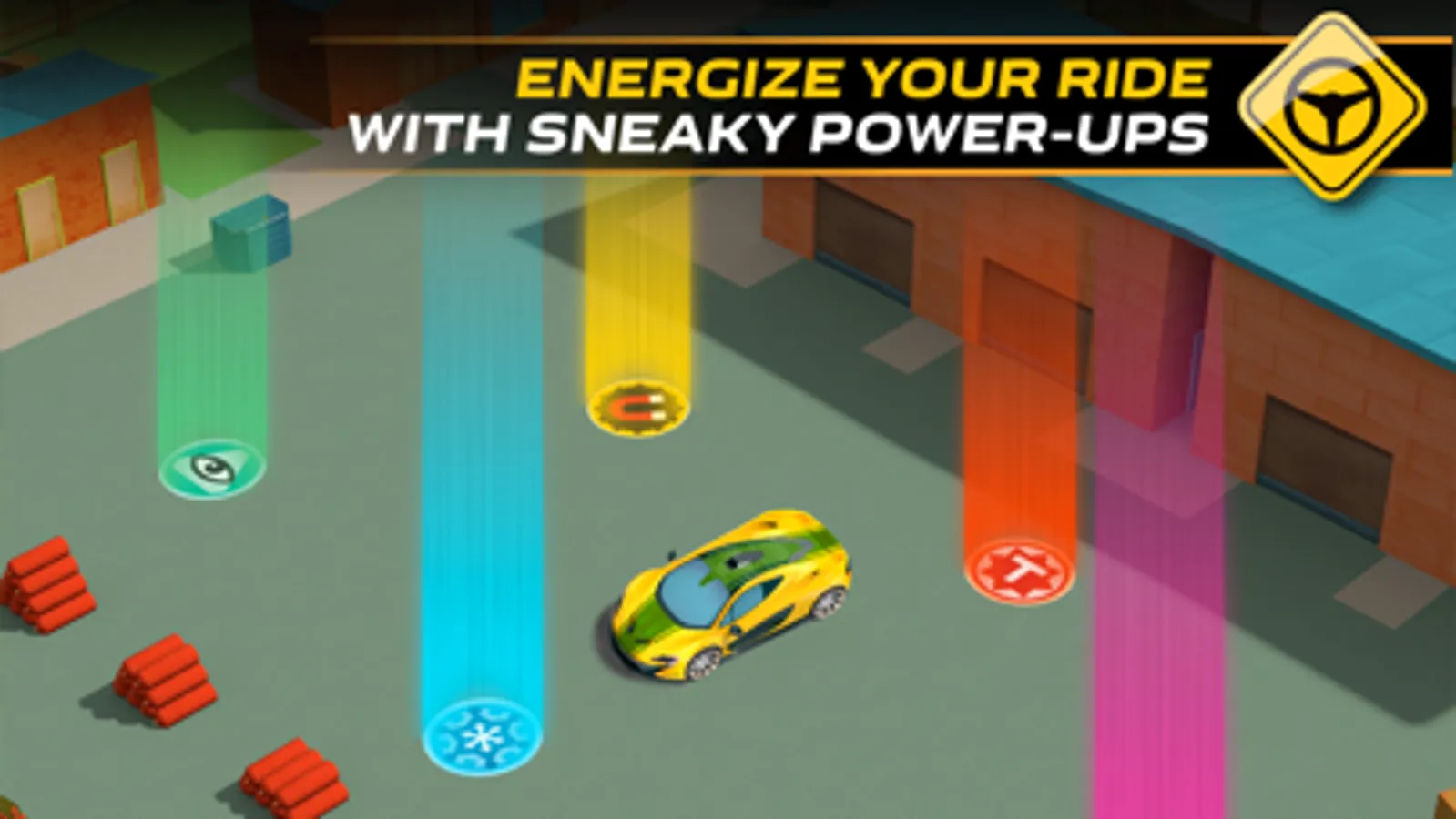 Use unique power-ups to evade cops, like shrinking or super-sizing your ride!