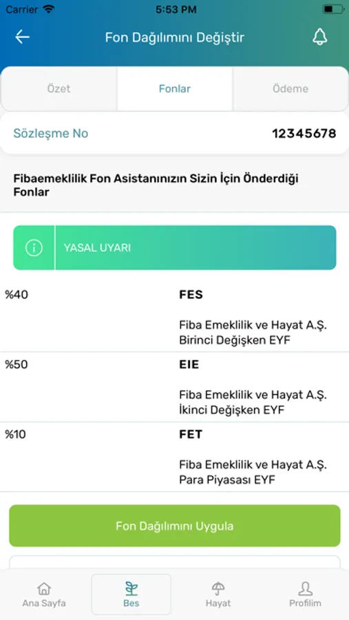 Aynı zamanda HDI Fibaemeklilik Mobil Şube uygulaması üzerinden fon dağılımınız hakkında tüm detayları öğrenebilir, fon tercihinizde HDI Fibaemeklilik’ten yardım alabilir, HDI Fibaemeklilik’in sunduğu risk profillerini inceleyebilir ya da fon dağılımınızı kendiniz belirleyebilirsiniz.