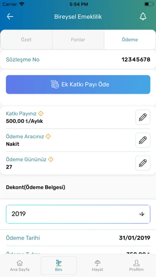 Ödeme adımından ek katkı payınızı yatırabileceğiniz gibi geçmişe dönük vadelerinizi de ödeyebilir, yaklaşan beş ödemenizi takip edebilirsiniz.