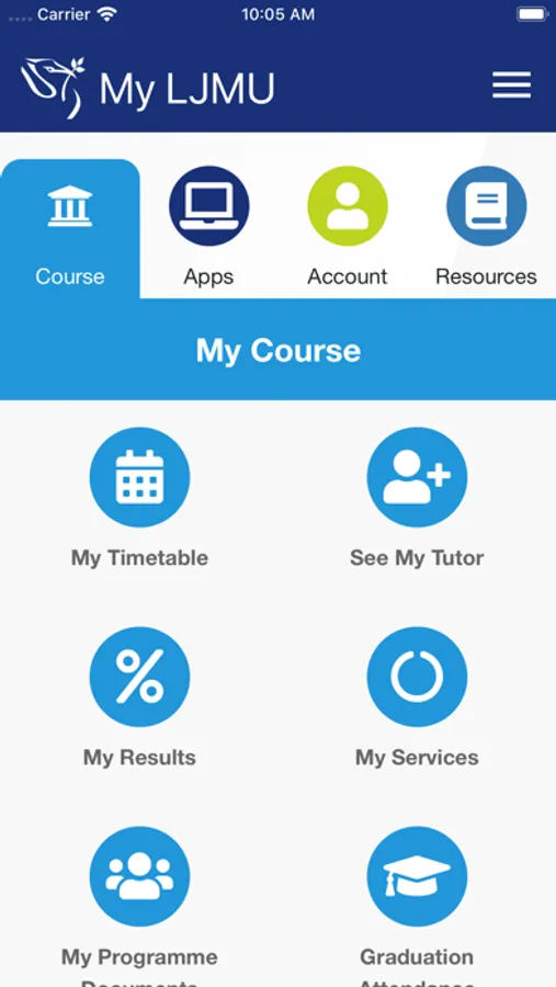 The My LJMU app gives you quick and easy access to vital LJMU services including My Timetable, See My Tutor, My Services, My Results, Free PC and a range of others.