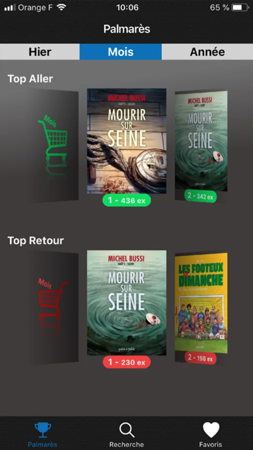 Retrouvez le palmarès de vos meilleures ventes de la veille, du mois ou de l'année en cours.