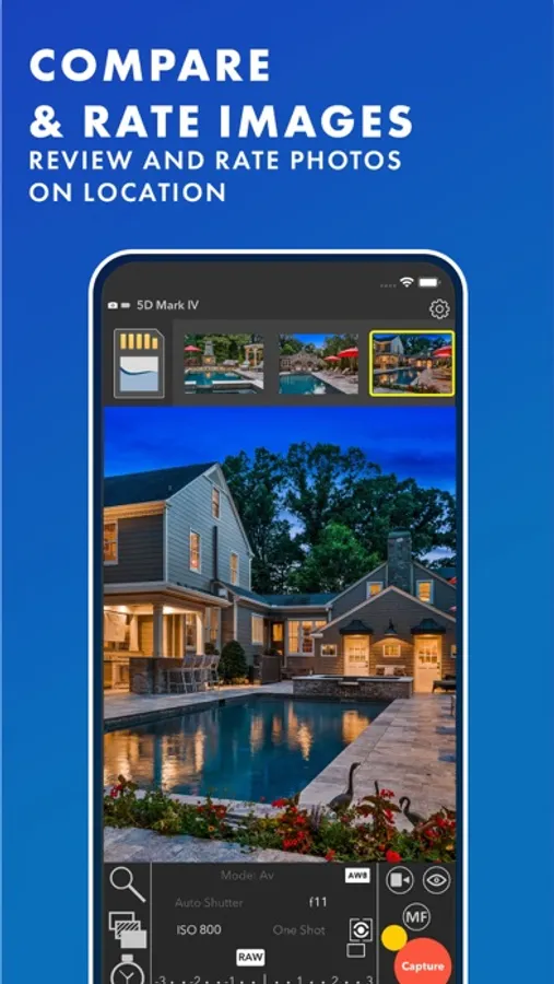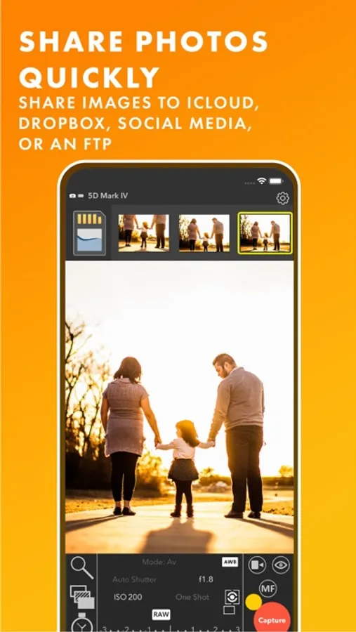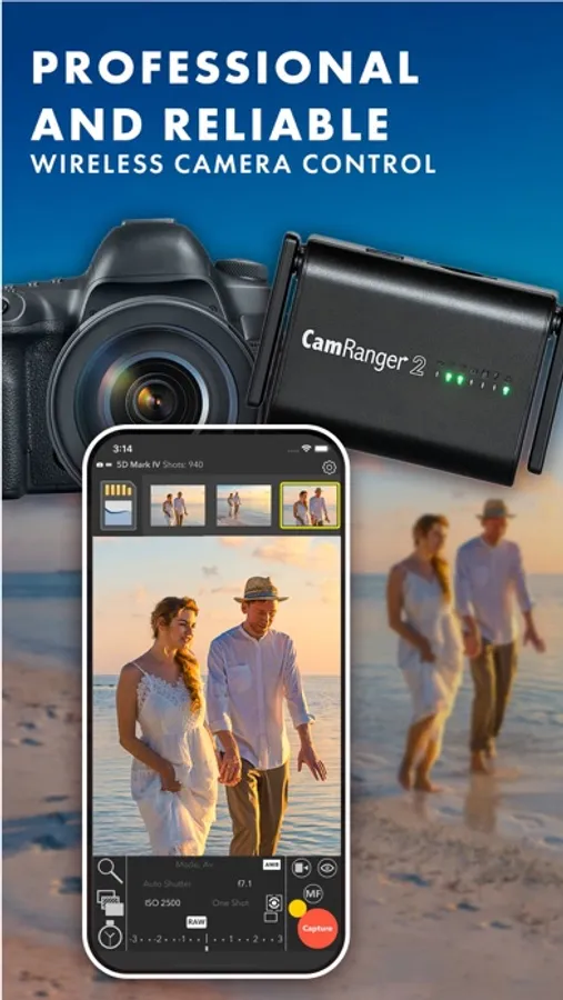 - Save images to iOS Photo Library, upload to social media, backup to CamRanger 2 SD card