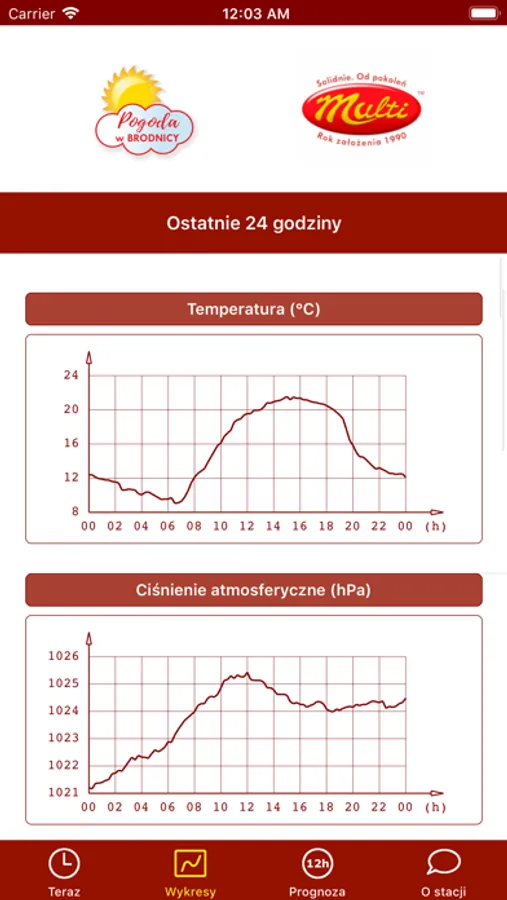 Dane z ostatnich 24 godzin prezentowane są na wykresach.