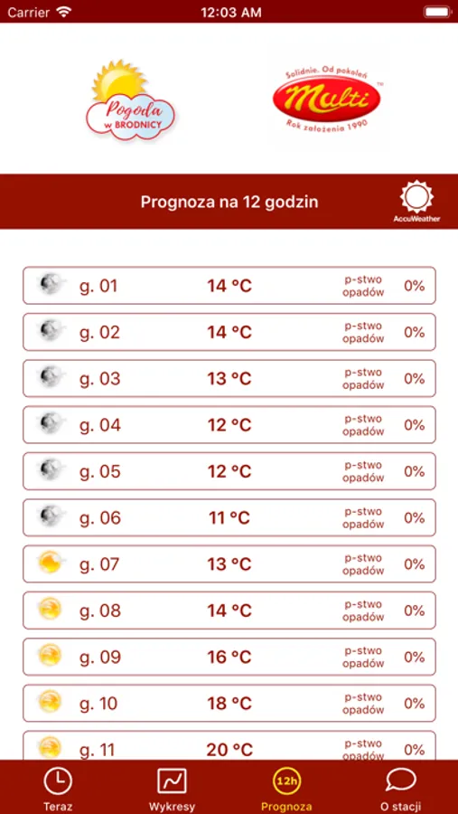 W aplikacji mamy również możliwość sprawdzenia prognozy na najbliższe 12 godzin.
