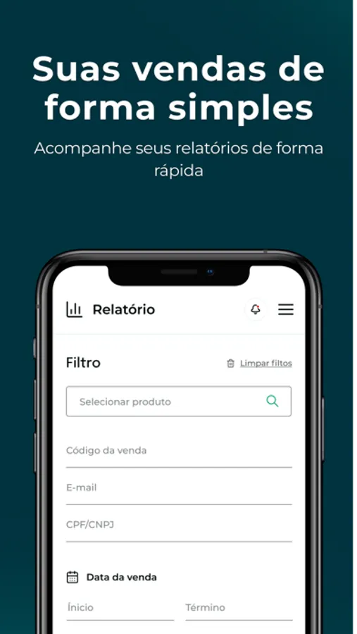 - Relatório de vendas com opções de filtros por produto, afiliado, dia, tipo de pagamento e outros.