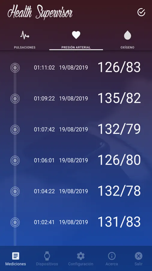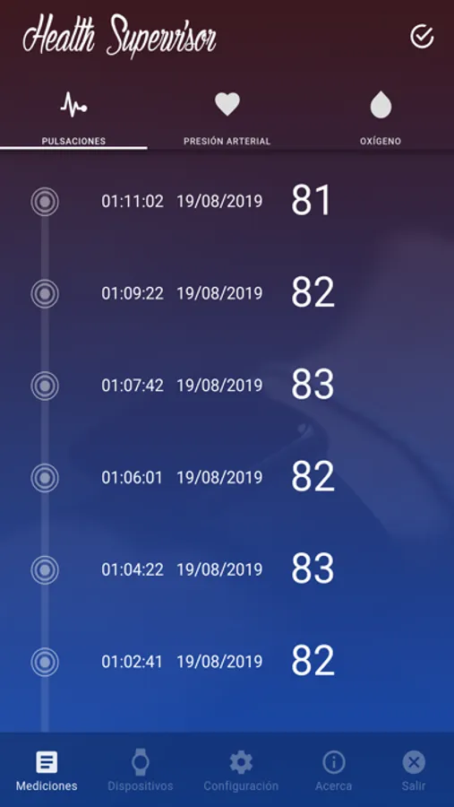 Health Supervisor permite a través de su pulsera smartband realizar mediciones de la actividad física en función de sus desplazamientos y de las siguientes constantes vitales: